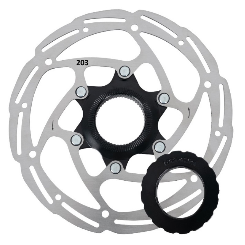 These Center Lock Disc Brake Rotors are designed for optimal heat dissipation and consistent braking in any weather condition. Crafted from stainless steel they feature a Shimano compatible splined centre lock mounting system for ease of installation and come with an included lock ring.