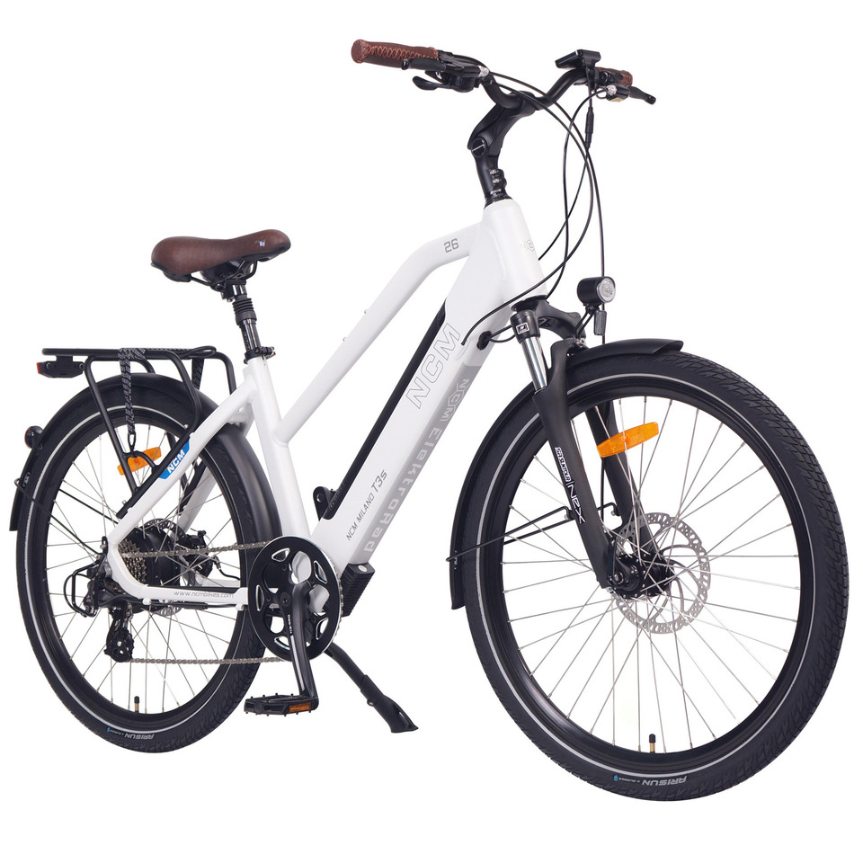Compared to the old NCM Venice, the new NCM T3 is built with a reinforced integrated battery. Inspired by the Romance of The great Italian City, The NCM T3 is both stylish and very practical. Perfect for running around the city, with a useful rack to the rear for extra storage. This E-bike is designed with a tough aluminium frame, and an adjustable handlebar/stem setup, with a sprung seat for improved comfort.